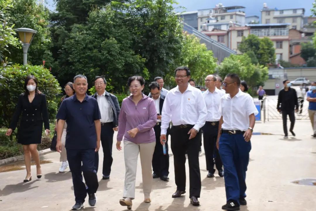 2021年8月27日上午,云南省人大常委會(huì)副主任、省總工會(huì)主席王樹芬,云南省工信廳黨組副書記、副廳長唐文祥,省總工會(huì)常務(wù)副主席孔貴華,省黨組成員、副主席金勇一行到公司調(diào)研,楚雄州人大常委會(huì)主任、州總工會(huì)主席商雁鴻、市總工會(huì)主席馬文輝,金七制藥總經(jīng)理史云龍等陪同調(diào)研。