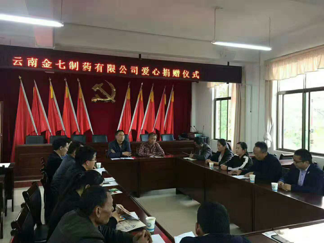 當(dāng)天參加活動(dòng)人員有州紀(jì)委州監(jiān)委領(lǐng)導(dǎo)、楚雄市黨委政府領(lǐng)導(dǎo)、楚雄市三街鎮(zhèn)黨委政府領(lǐng)導(dǎo)、楚雄市三街鎮(zhèn)酒簸村委會(huì)代表、州紀(jì)委監(jiān)委派駐三街鎮(zhèn)酒簸村委會(huì)扶貧工作隊(duì)員。大家圍繞活動(dòng)主題進(jìn)行了座談,首先州紀(jì)委監(jiān)委駐村工作隊(duì)隊(duì)長(zhǎng)林天明進(jìn)行發(fā)言,組織學(xué)習(xí)黨的十九大鄉(xiāng)村振興戰(zhàn)略規(guī)劃相關(guān)內(nèi)容并匯報(bào)了駐三街鎮(zhèn)酒簸村扶貧工作隊(duì)1至10月工作開(kāi)展情況。然后三街鎮(zhèn)酒簸村黨總支書(shū)記段連華發(fā)言,接下來(lái)云南金七制藥有限公司黨支部書(shū)記和肇有代表公司進(jìn)行發(fā)言,主要介紹了公司發(fā)展現(xiàn)狀及“百企幫百村”履行社會(huì)責(zé)任等相關(guān)情況,接著現(xiàn)場(chǎng)舉行捐贈(zèng)儀式并合影,最后楚雄市三街鎮(zhèn)黨委政府領(lǐng)導(dǎo)發(fā)言,州紀(jì)委監(jiān)委常委、組織部部長(zhǎng)王華國(guó)作會(huì)議小結(jié)并提相關(guān)要求。當(dāng)天楚雄市委常委、駐村扶貧工作隊(duì)副總隊(duì)長(zhǎng)郭興旺同志也到村委會(huì)參加了活動(dòng)。