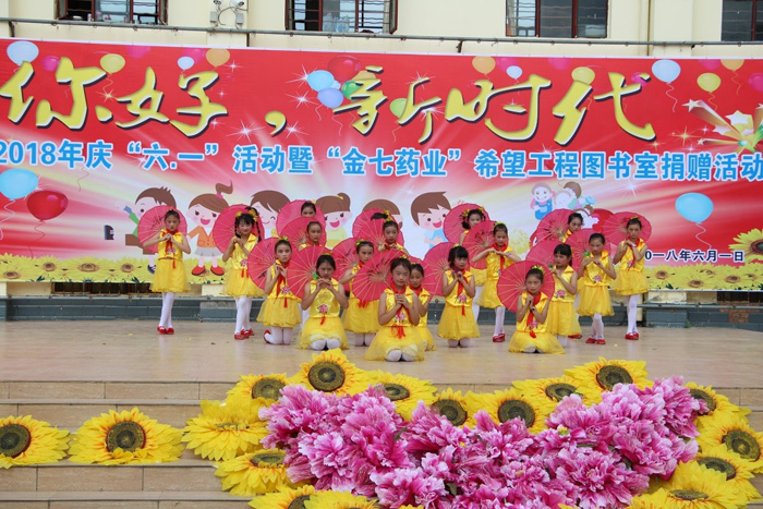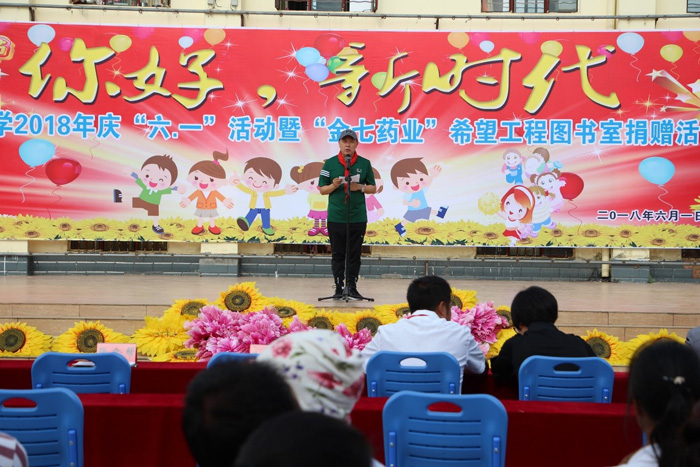 2018年6月1日上午,恰逢六一國際兒童節(jié)到來之際,金七藥業(yè)希望工程圖書室捐贈活動在盤龍鄉(xiāng)小學(xué)舉行,公司黨支部書記、副董事長李興榮出席活動。