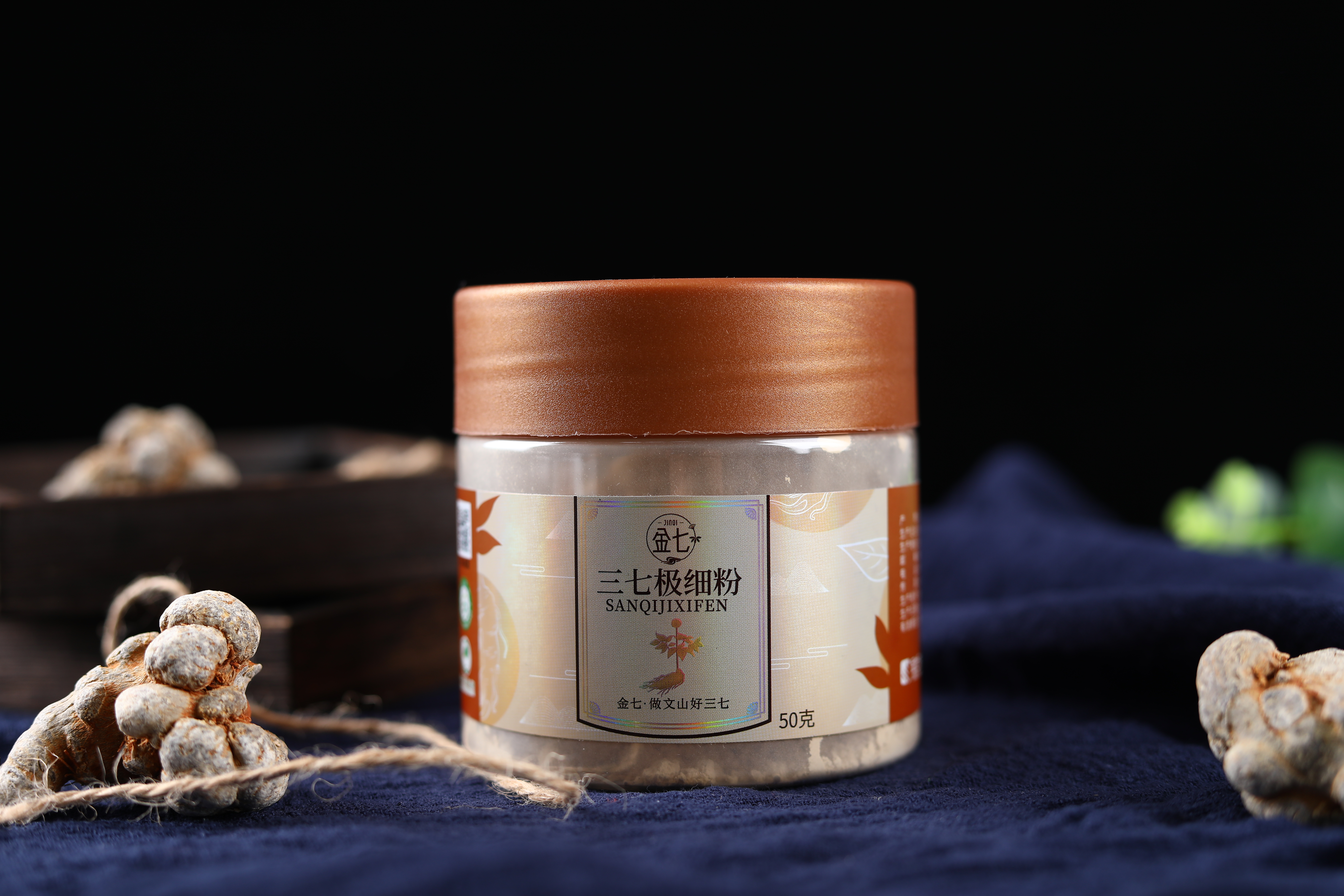 2、市面上的三七很多都是烤干的,三七原有的有效成分會丟失,消費者無法判斷是否為烤干的三七,金七的三七粉恒溫干燥情況下有效成分將保留的更多。