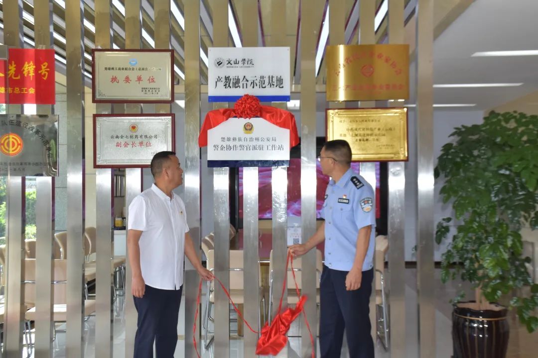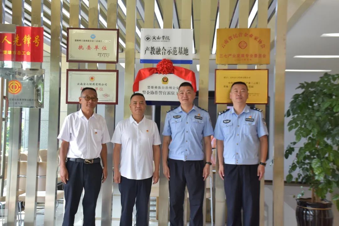為深入貫徹落實(shí)楚雄州《關(guān)于進(jìn)一步加大優(yōu)化營(yíng)商環(huán)境工作力度若干意見》精神,健全優(yōu)化營(yíng)商環(huán)境法治保障體系,2022年8月18日上午,楚雄州公安局“警企協(xié)作警官派駐工作站”揭牌儀式在云南金七制藥有限公司舉行。楚雄州公安局環(huán)食藥偵支隊(duì)政委李濱、楚雄州公安局環(huán)食藥偵支隊(duì)副支隊(duì)長(zhǎng)劉文海出席儀式,金七制藥有限公司董事長(zhǎng)張?jiān)粕?、總?jīng)理史云龍參加儀式。