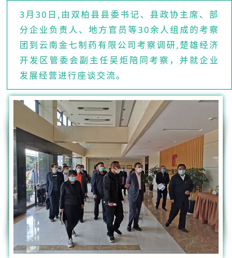 當(dāng)日上午9:30,考察團(tuán)一行到我公司進(jìn)行現(xiàn)場考察,公司總經(jīng)理史云龍及部門負(fù)責(zé)人熱情接待了來訪人員,公司總經(jīng)理對考察團(tuán)一行的到來表示歡迎,向考察團(tuán)一行介紹了公司的發(fā)展歷程及近年來公司發(fā)展情況。楚雄經(jīng)濟(jì)開發(fā)區(qū)管委會副主任吳炬表示,我區(qū)高度重視生物醫(yī)藥產(chǎn)業(yè)的發(fā)展,金七制藥為我區(qū)重點支持企業(yè),該企業(yè)的自主創(chuàng)新意識及創(chuàng)新能力較強,科技創(chuàng)新碩果累累,市場競爭能力和可持續(xù)發(fā)展能力逐步提升,為楚雄開發(fā)區(qū)經(jīng)濟(jì)持續(xù)穩(wěn)定健康發(fā)展做出了積極貢獻(xiàn)。