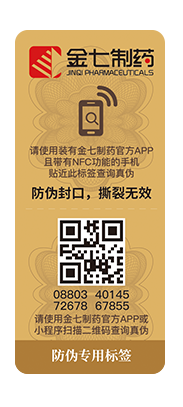 金七藥業(yè)售出的產(chǎn)品都貼有防偽專用標(biāo)簽,請使用裝有金七藥業(yè)官方APP且?guī)в蠳FC功能的手機(jī)貼近防偽專用標(biāo)簽進(jìn)行真?zhèn)尾樵儭?注:蘋果手機(jī)暫不支持NFC功能)