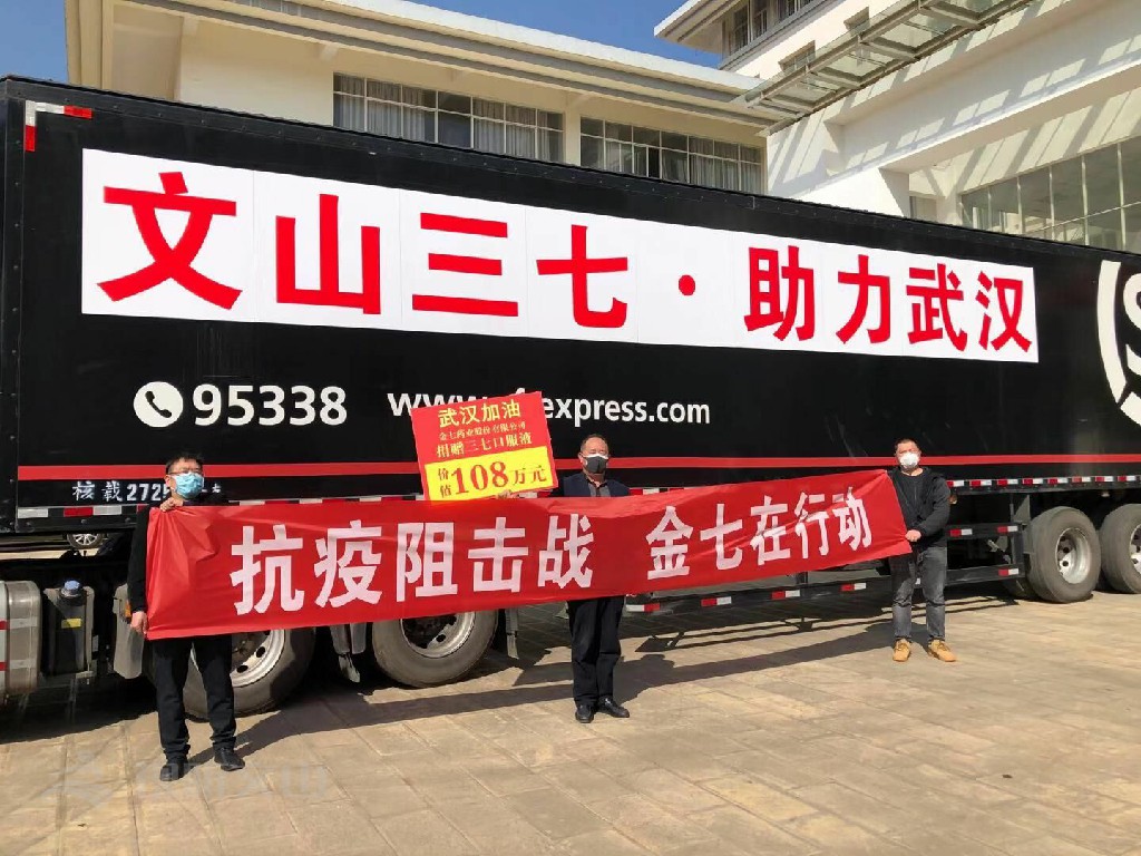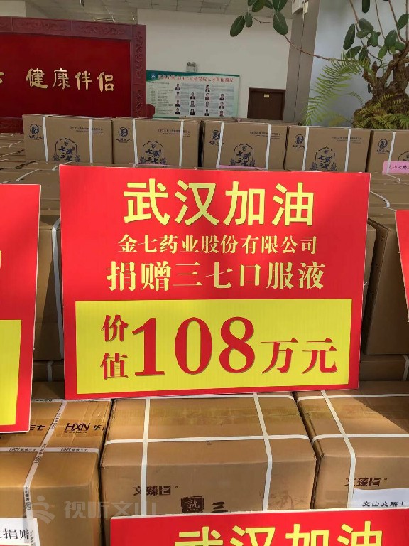 在文山大地,一些三七企業(yè)得知文山三七被列入抗擊病毒藥材之一后,紛紛伸出援助之手,先后兩次捐贈三七,全州21家三七企業(yè)向武漢和上海捐贈三七產(chǎn)品總價值705萬余元。其中金七藥業(yè)股份有限公司捐贈三七口服液100件,價值108萬元。